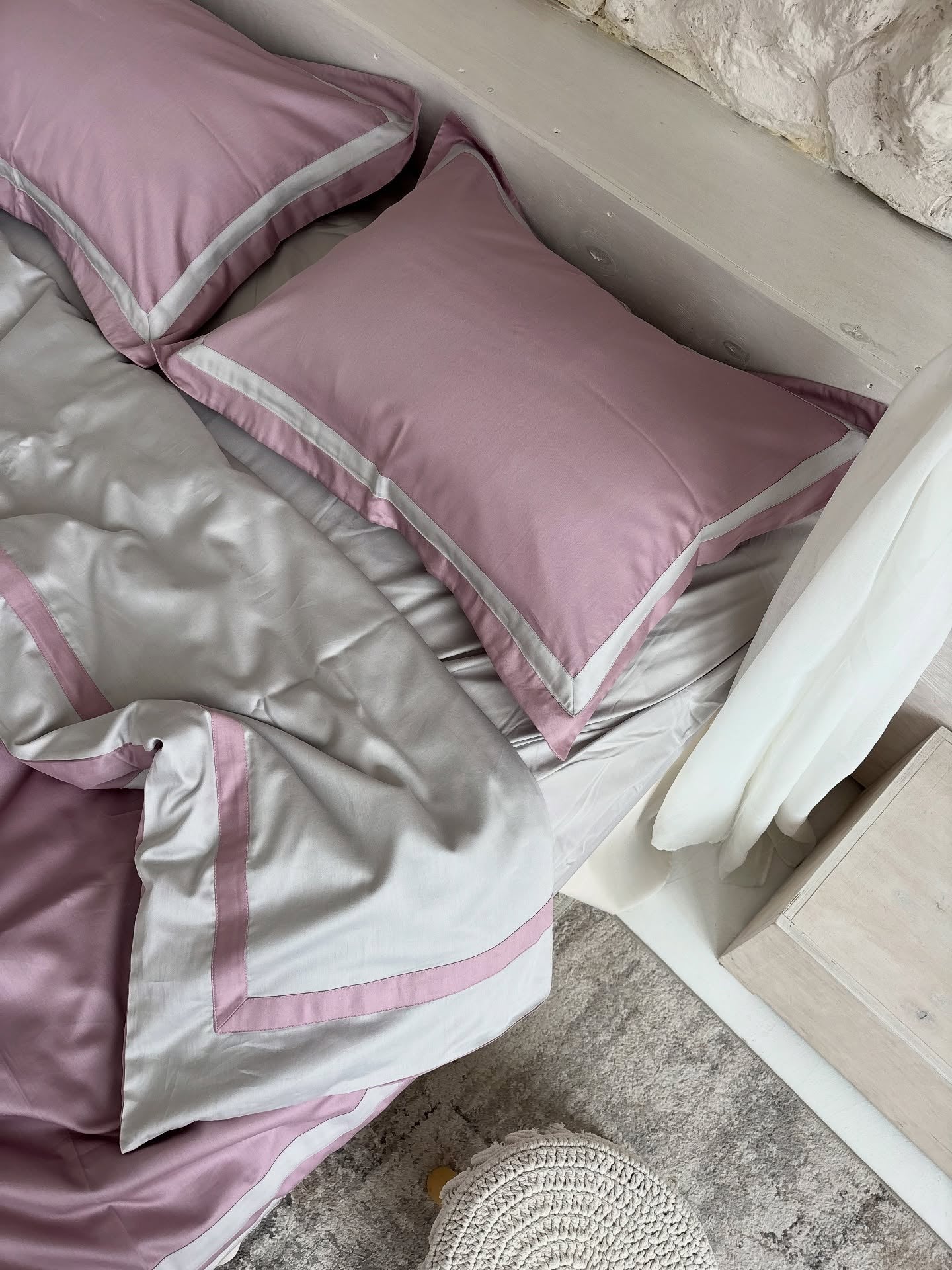 Pościel nude z szarą lamówką