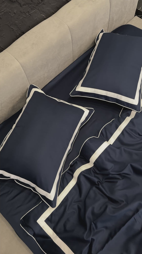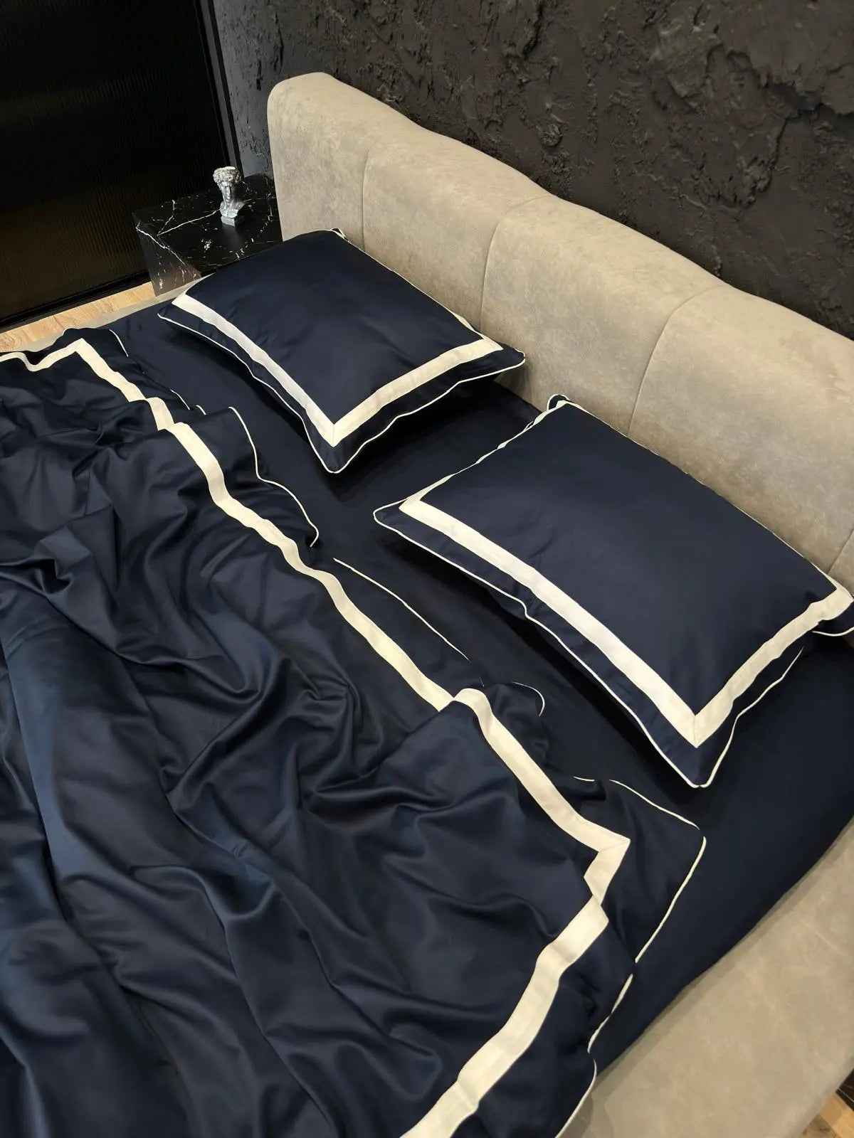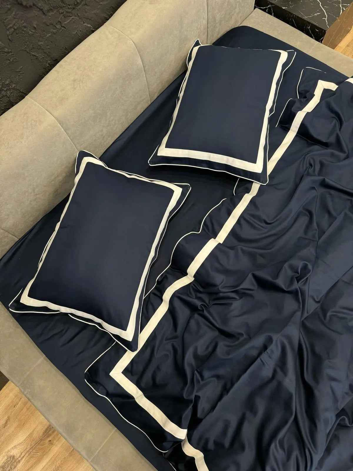 Pościel z Merceryzowanej Satyny – Granatowy & Biały, 100% Bawełna Turecka, 140 g/m², Edycja Exclusive
