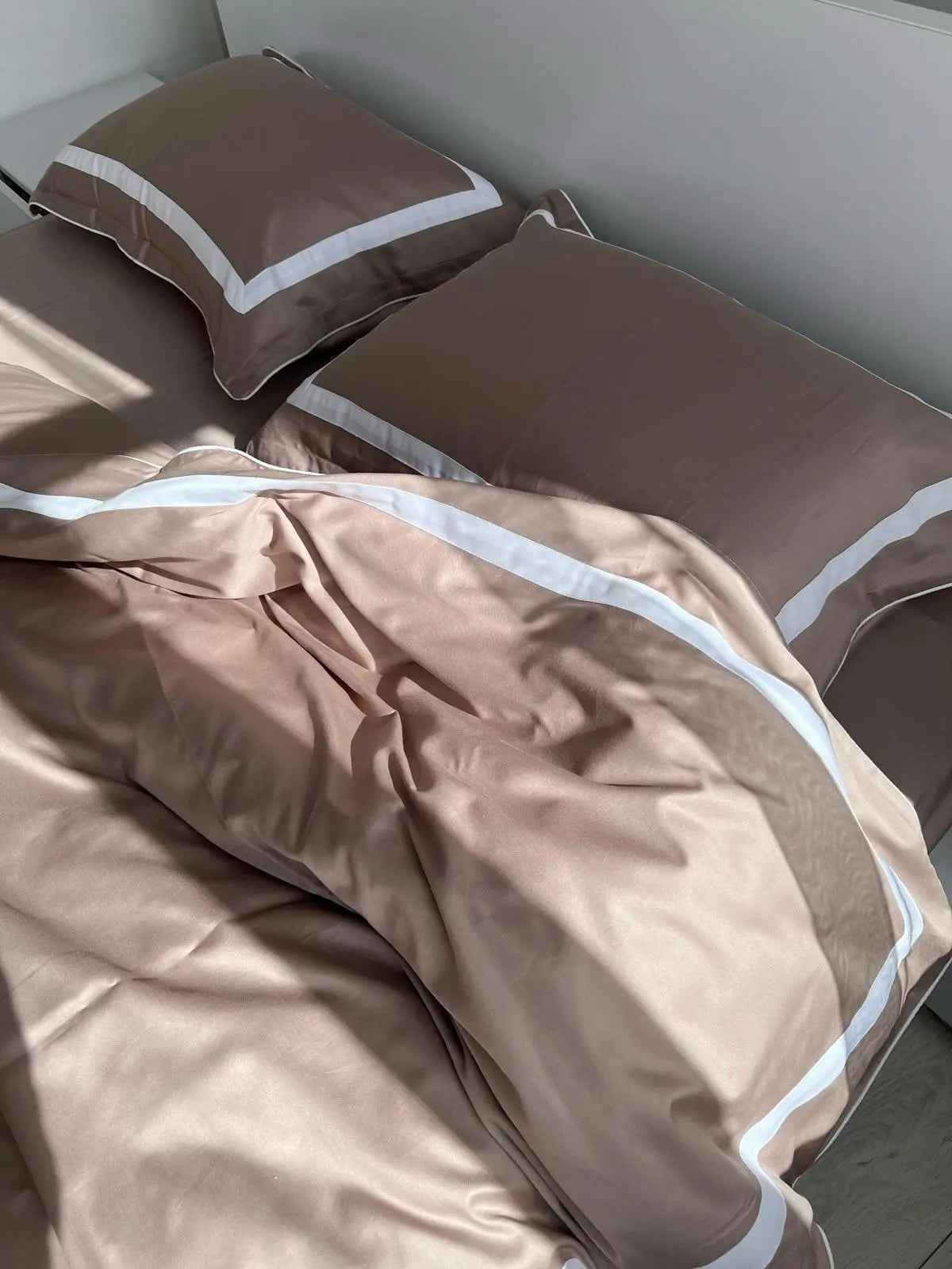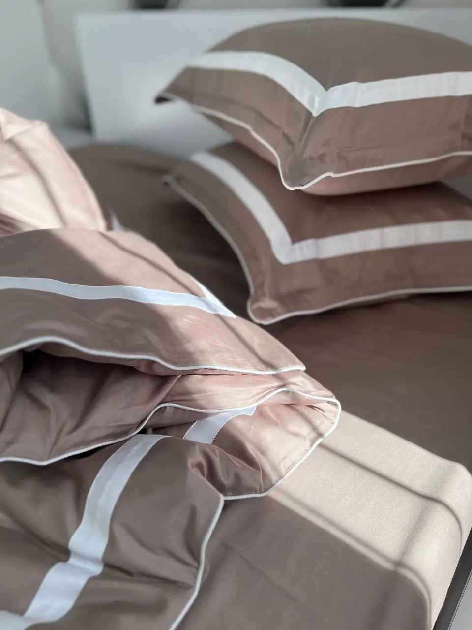 Pościel z Merceryzowanej Satyny – Kakao & Biały, 100% Bawełna Turecka, 140 g/m², Edycja Exclusive
