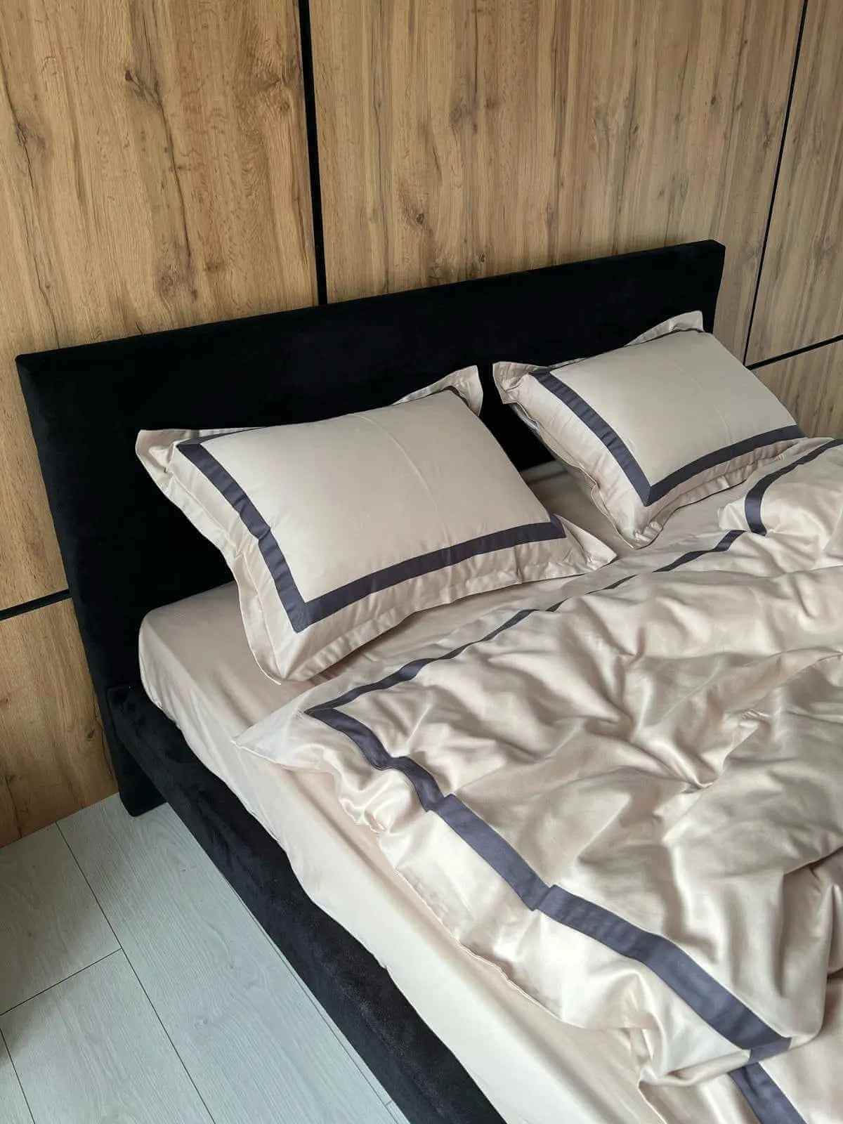 Pościel z Merceryzowanej Satyny –Nude & Szary, 100% Bawełna Turecka, 140 g/m², Edycja Exclusive
