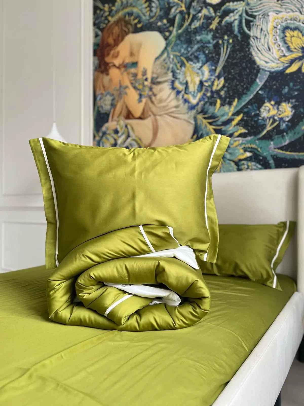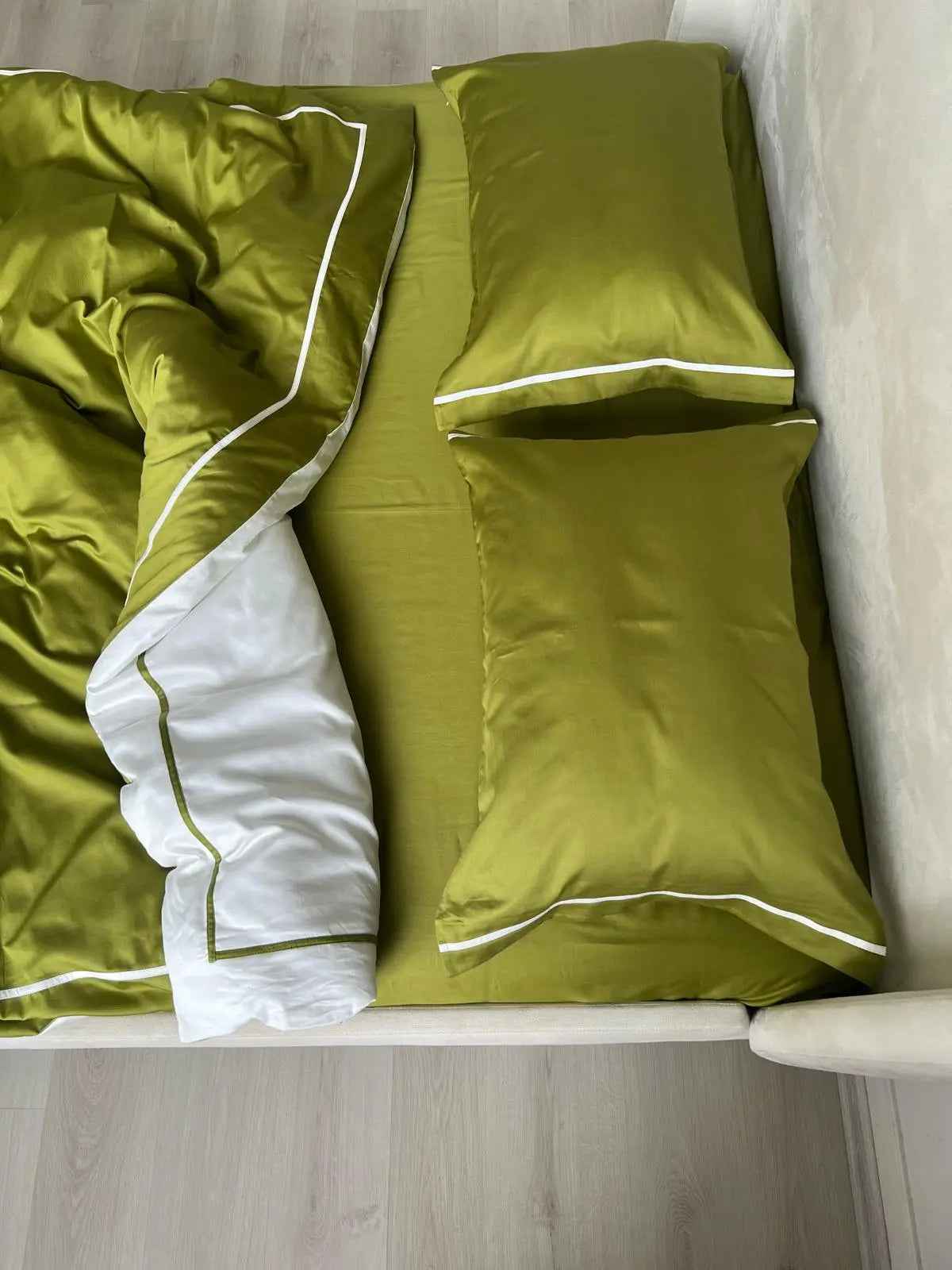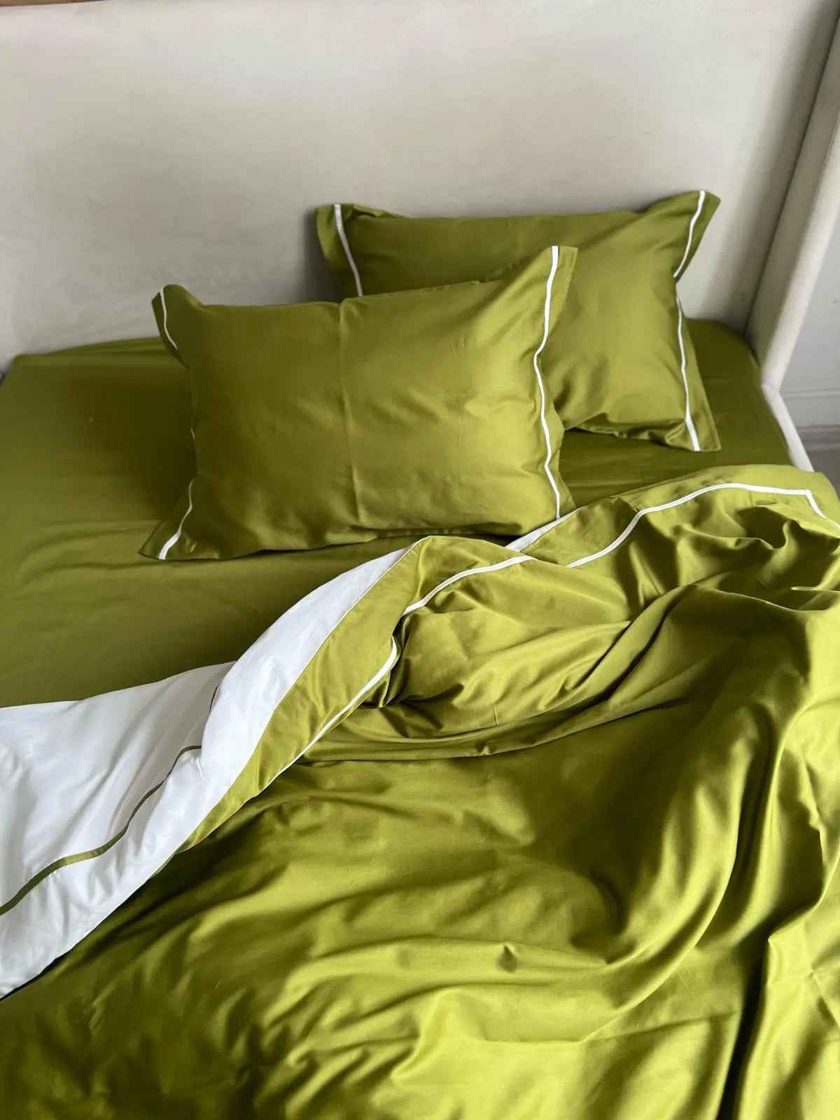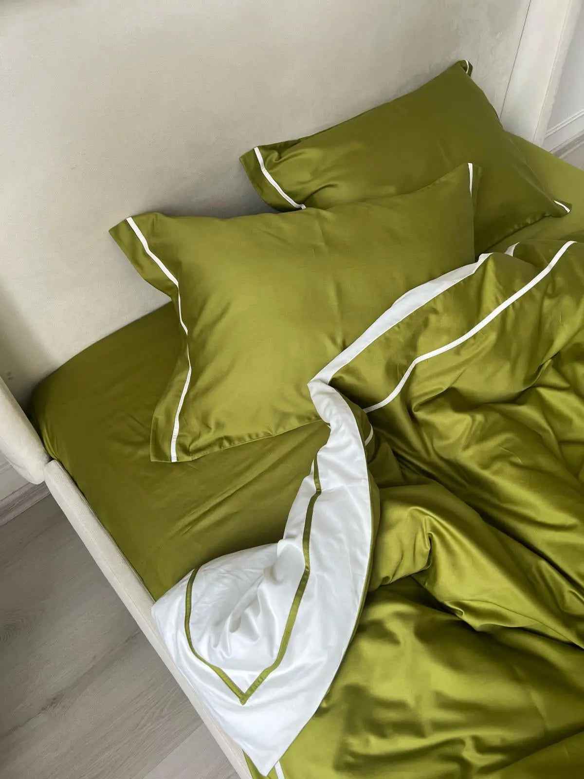 Pościel z Merceryzowanej Satyny – Oliwkowy & Biały, 100% Bawełna Turecka, 140 g/m², Edycja Exclusive