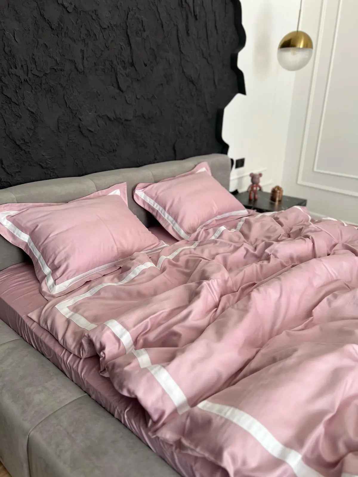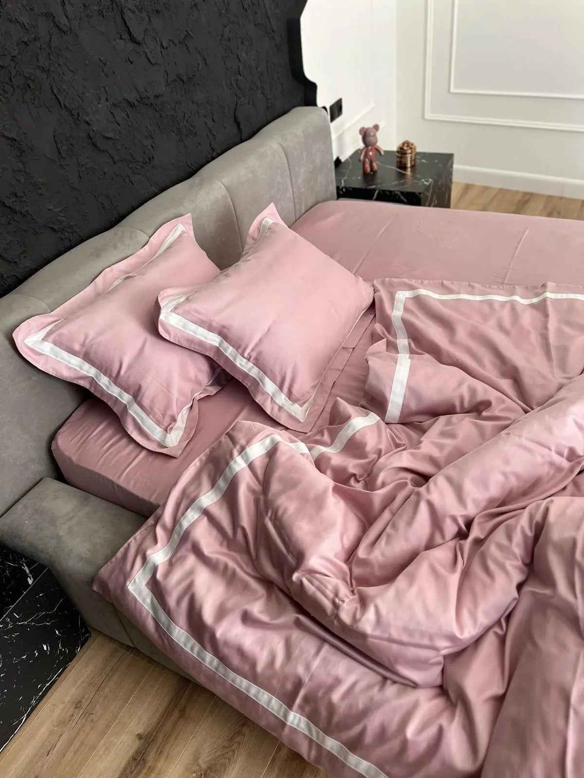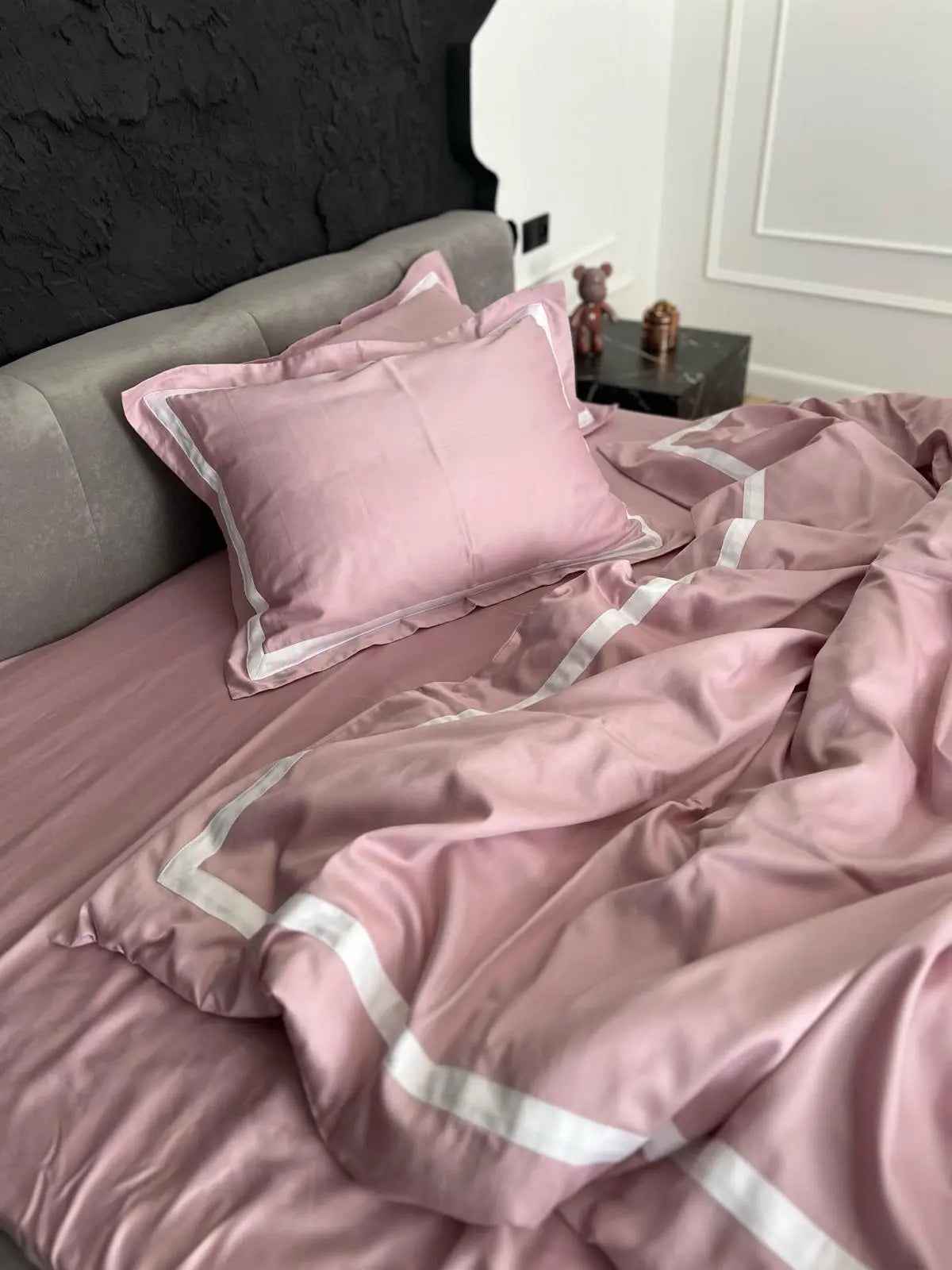 Pościel z Merceryzowanej Satyny – Pudrowy Róż & Biały, 100% Bawełna Turecka, 140 g/m², Edycja Exclusive