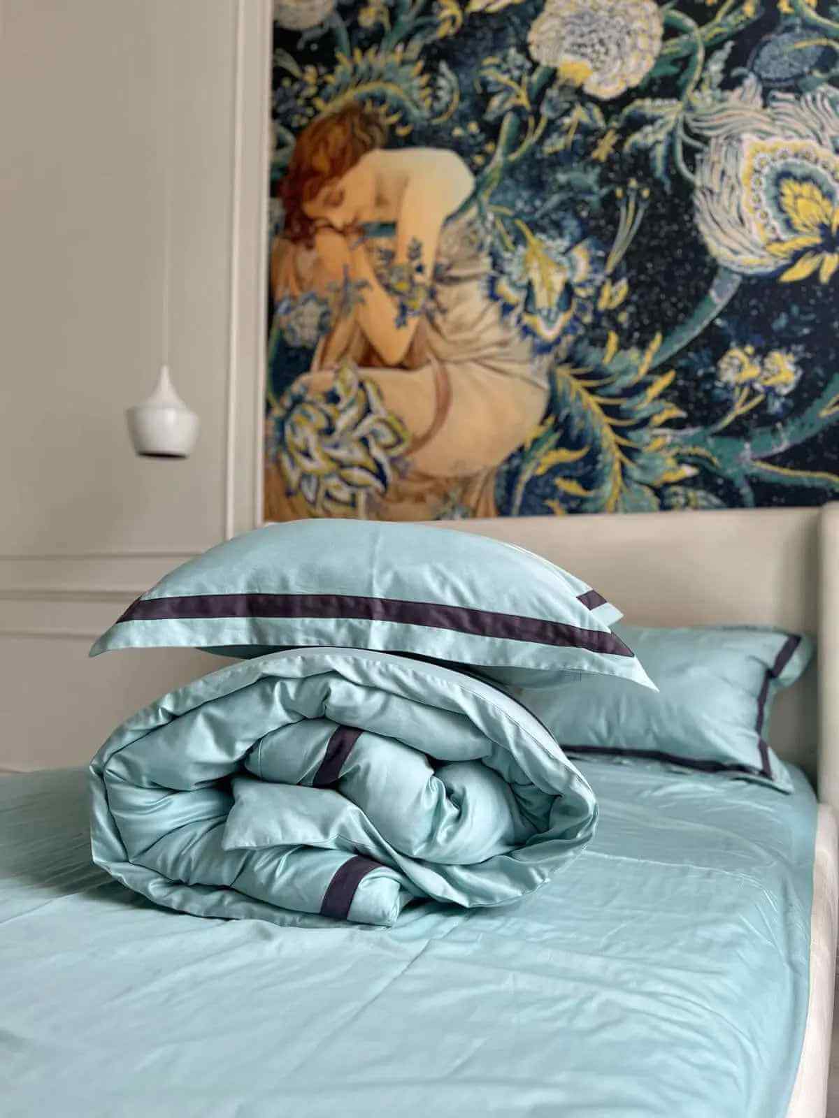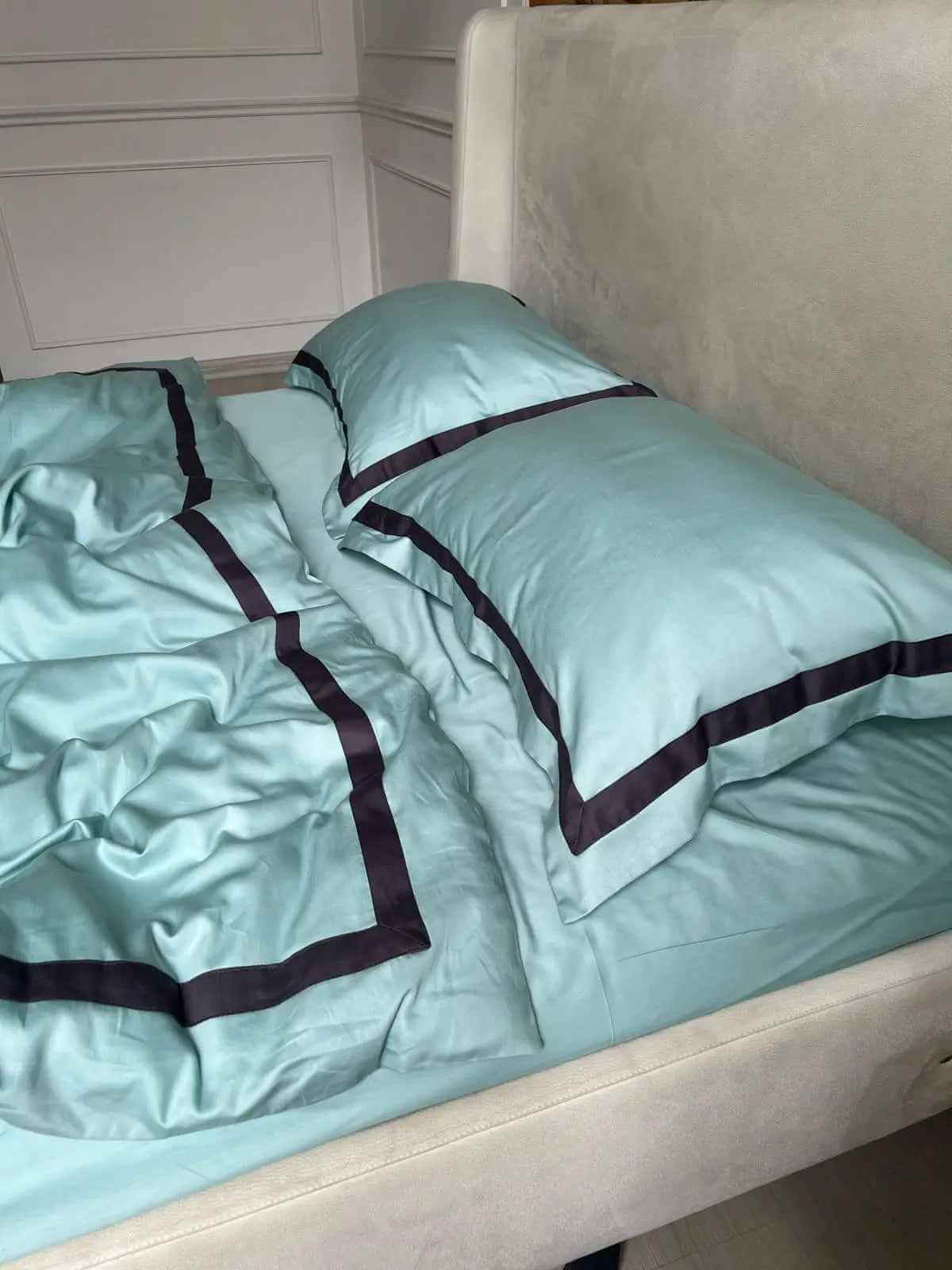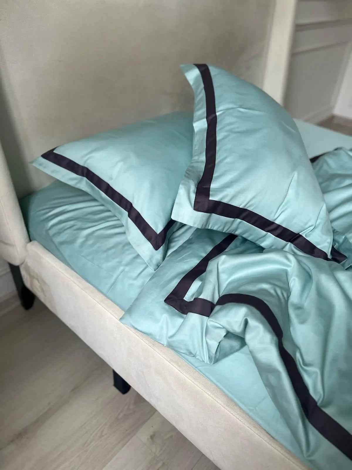 Pościel z Merceryzowanej Satyny –Turkusowy Niebieski & Czarny, 100% Bawełna Turecka, 140 g/m², Edycja Exclusive