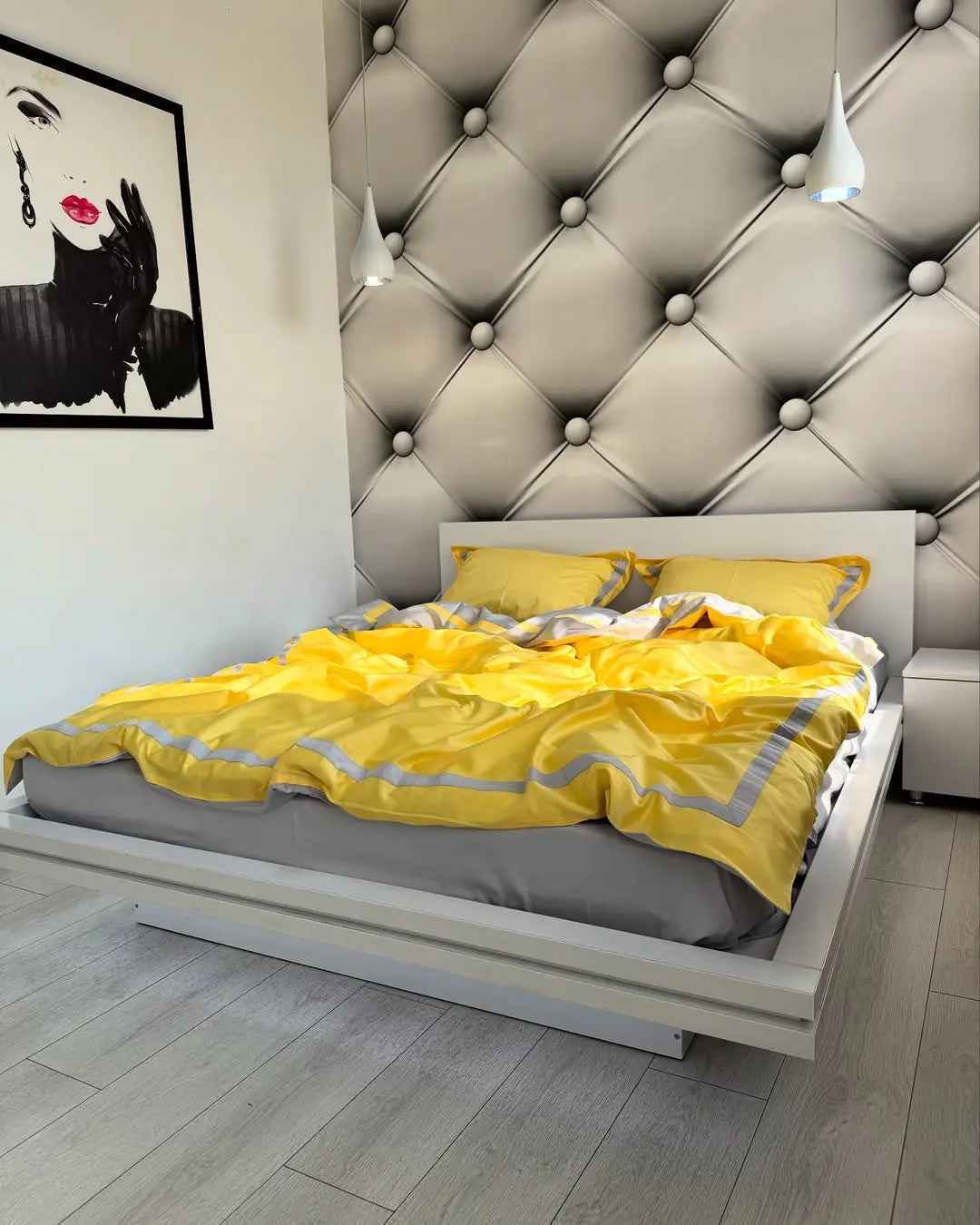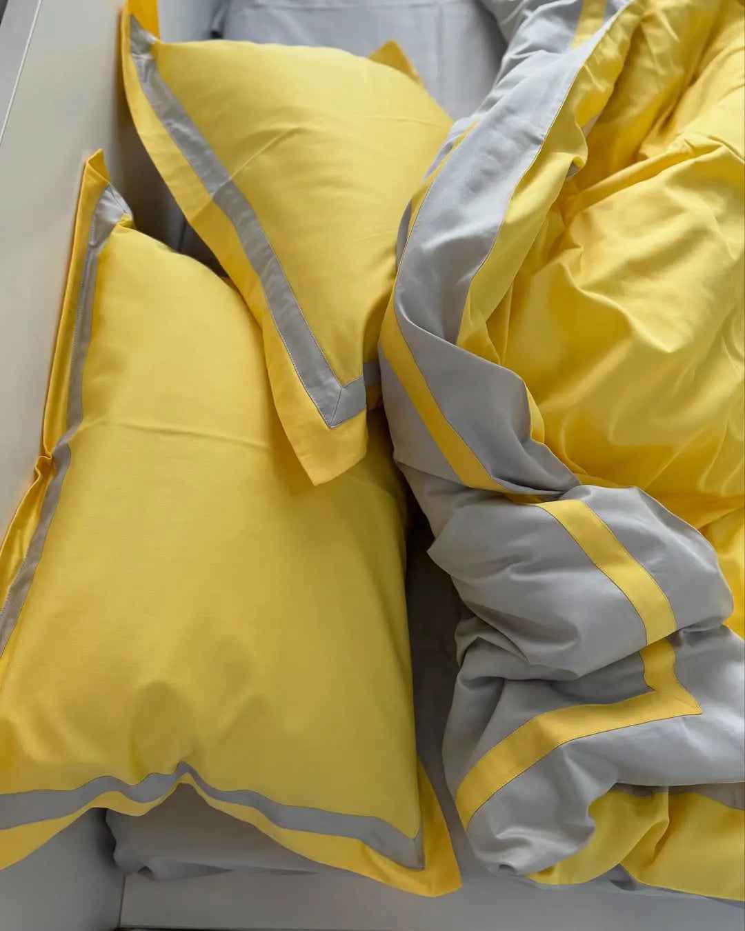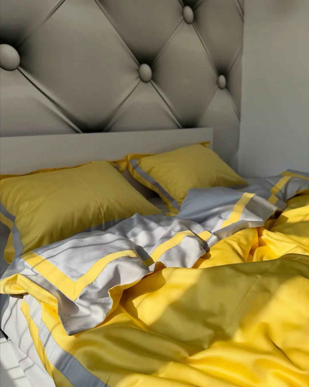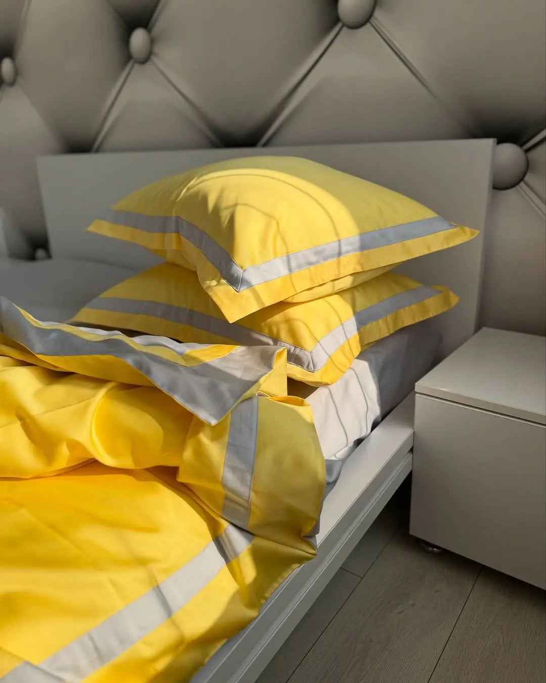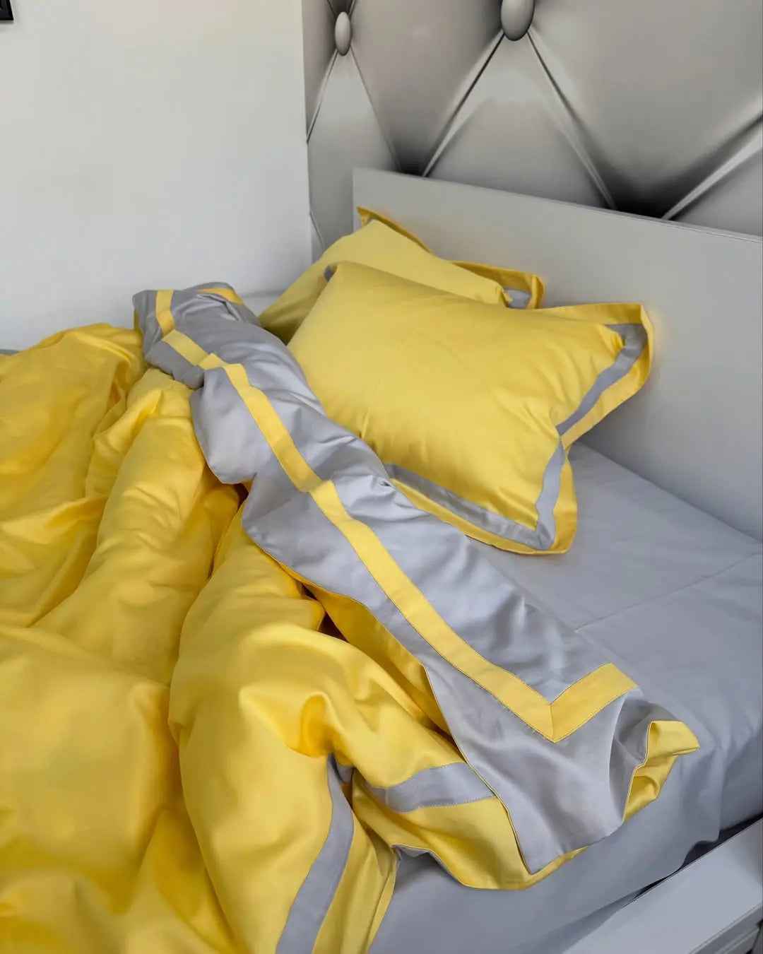 Pościel z Merceryzowanej Satyny – Żółto & Szara, 100% Bawełna Turecka, 140 g/m², Edycja Exclusive