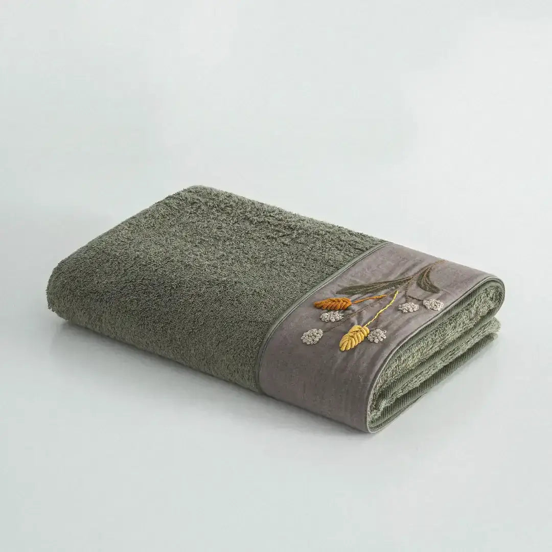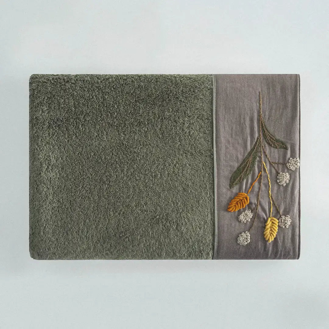 Zestaw 2 Ręczników Kąpielowych – Farah – Damski, 100% Organiczna Bawełna, Ręcznie Haftowany, Zielony