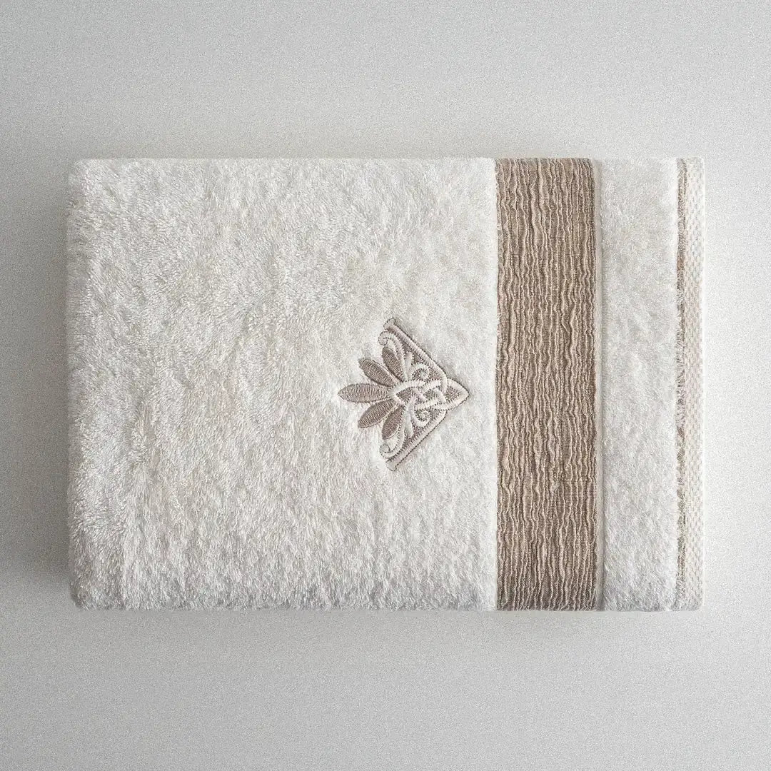 Zestaw 2 Ręczników Kąpielowych – Mihra – Damski, 100% Organiczna Bawełna, Detal z Haftem Arma, Kremowy