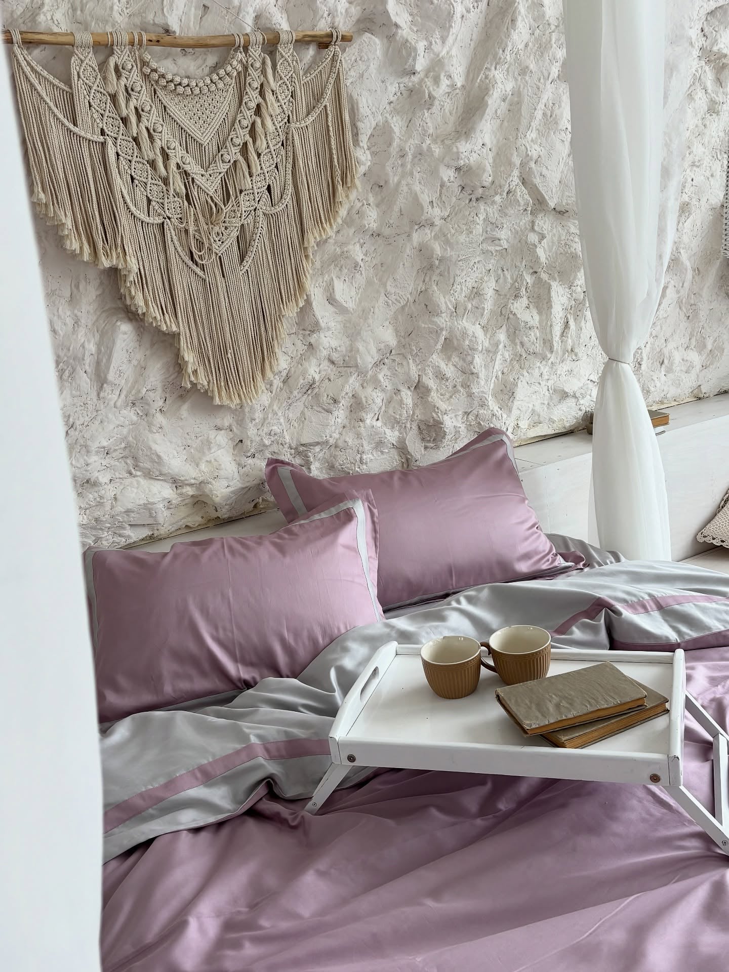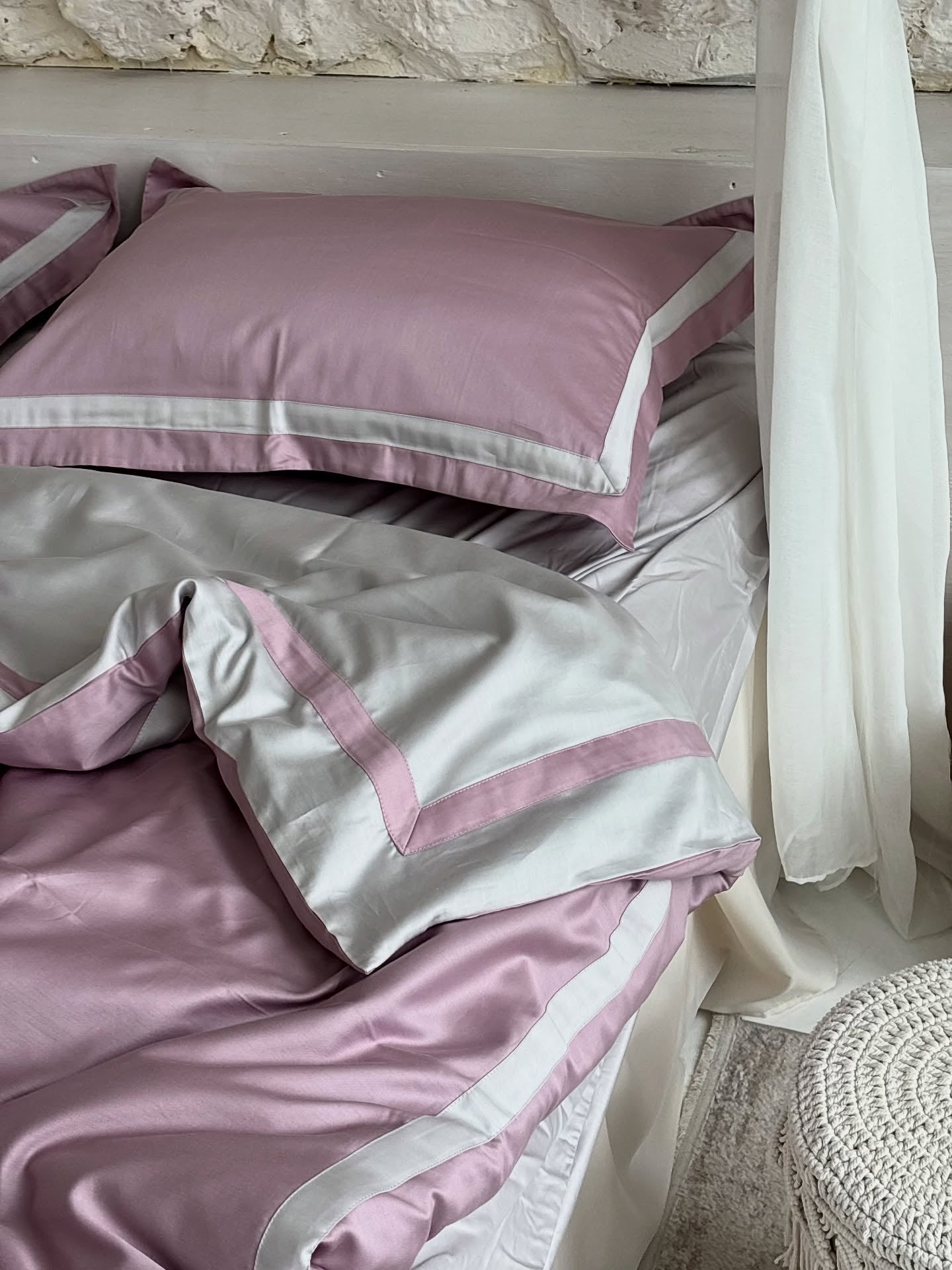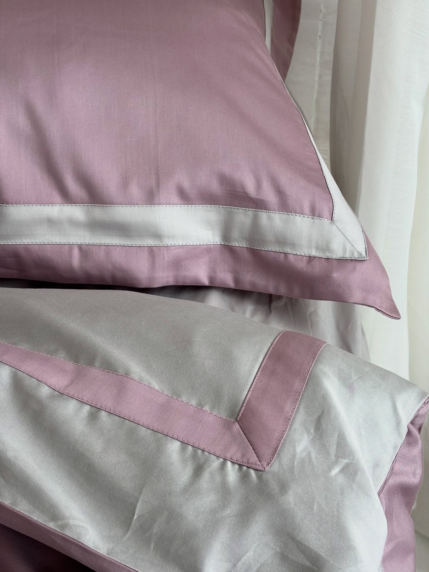 Pościel z Merceryzowanej Satyny – Pudrowy Mauve & Szary Kamienny, 100% Bawełna Turecka, 140 g/m², Edycja Exclusive