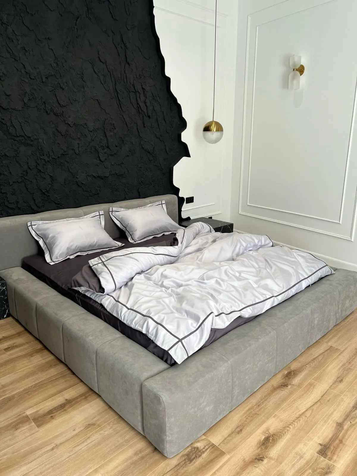 Pościel z Merceryzowanej Satyny – Silver Szary & Asfaltowy, 100% Bawełna Turecka, 140 g/m², Edycja Exclusive