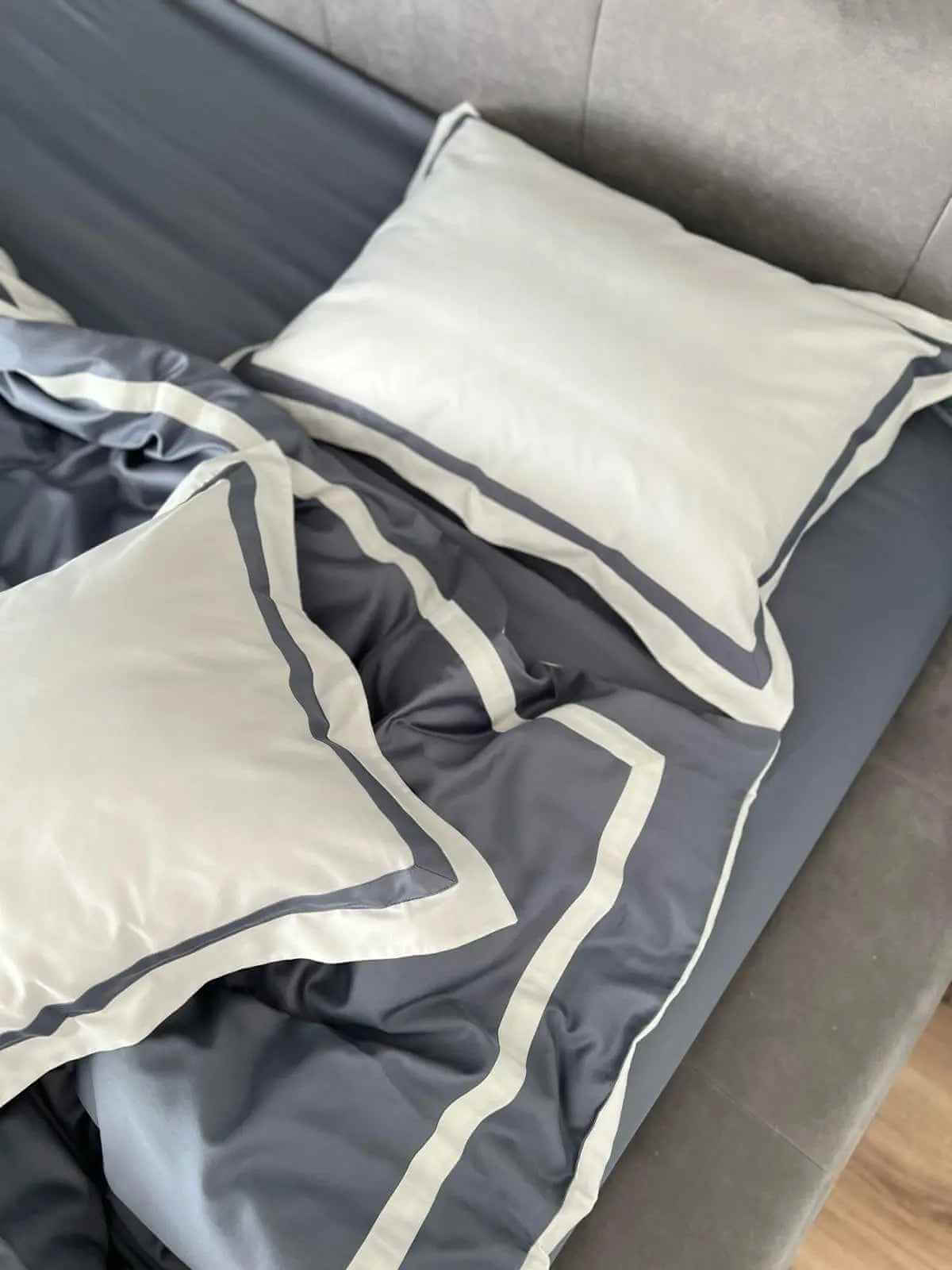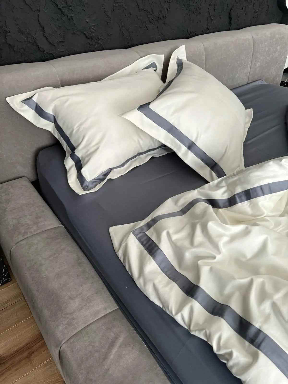 Pościel z Merceryzowanej Satyny – Szary & Biały, 100% Bawełna Turecka, 140 g/m², Edycja Exclusive