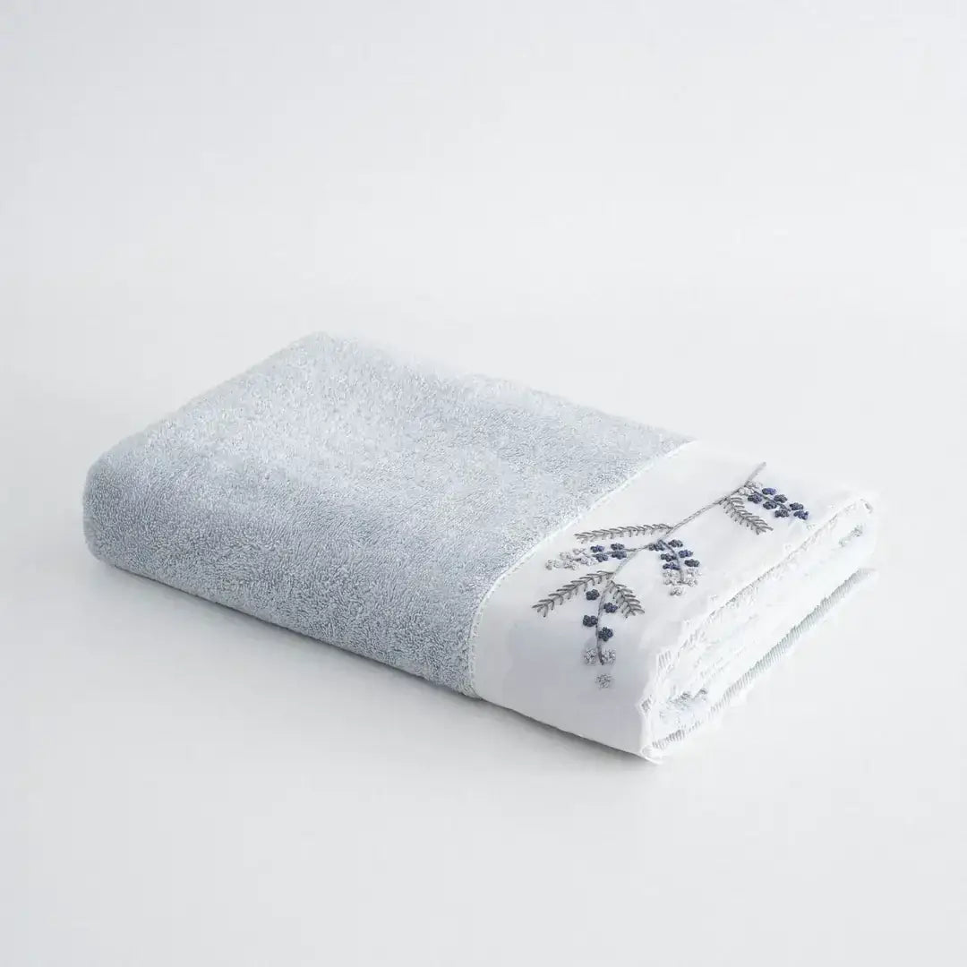 Zestaw 2 Ręczników Kąpielowych – Derin – Damski, 100% Organiczna Bawełna, Ręcznie Haftowany, Jasny Niebieski