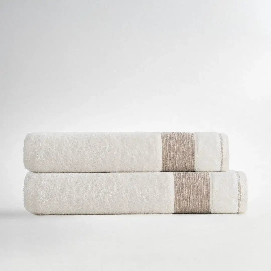 Zestaw 2 Ręczników Kąpielowych – Mihra – Damski, 100% Organiczna Bawełna, Detal z Haftem Arma, Kremowy