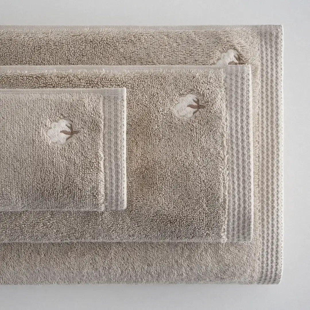 Ręcznik haftowany z bawełny organicznej Pure Cotton – Zestaw 3 szt. Beżowy