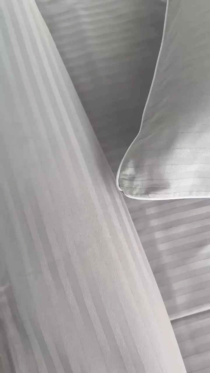 Pościel z Merceryzowanej Satyny – Jasnoszary w Paski z Białą Lamówką, 100% Bawełna Turecka, 140 g/m², Kolekcja Premium