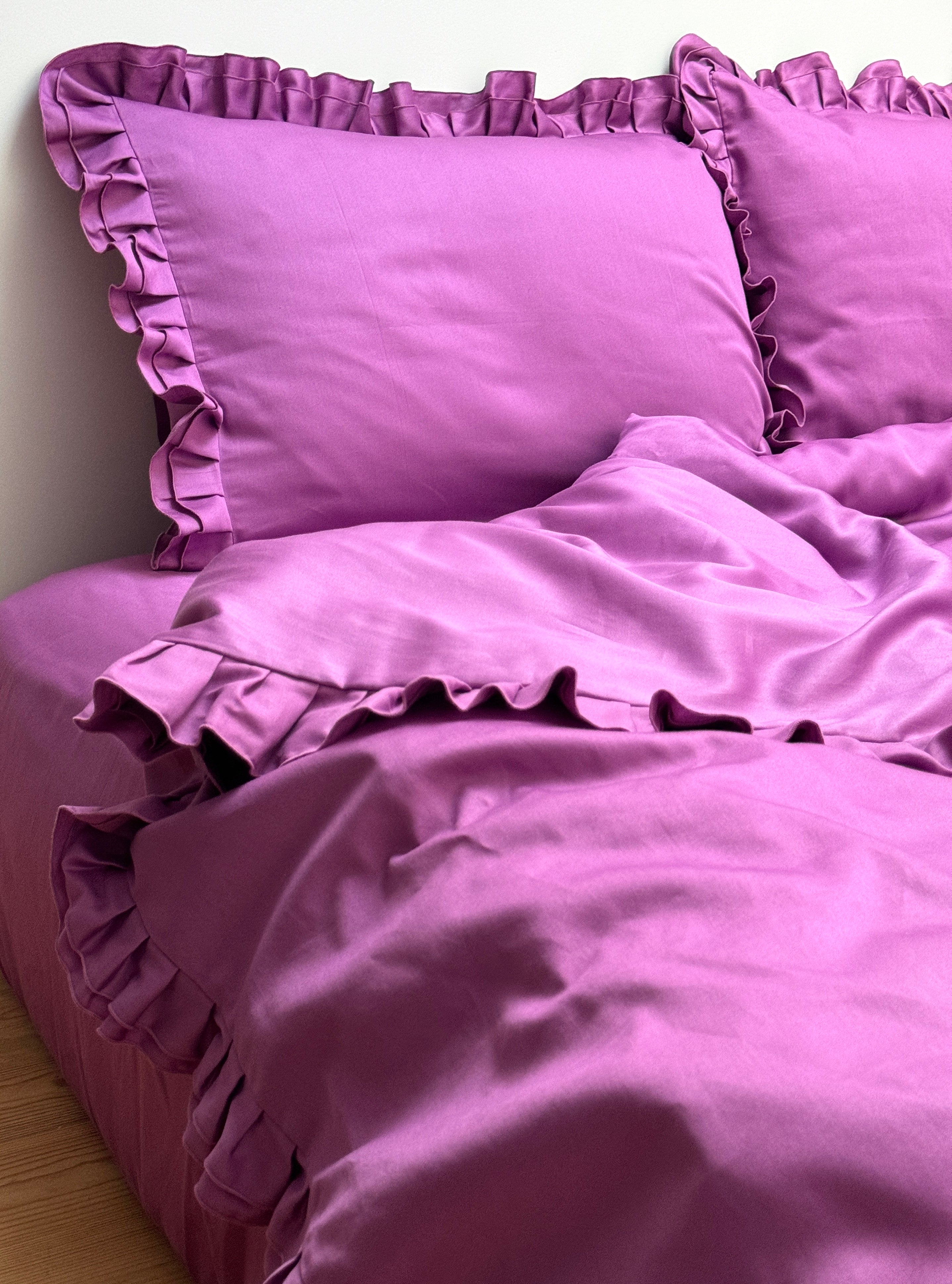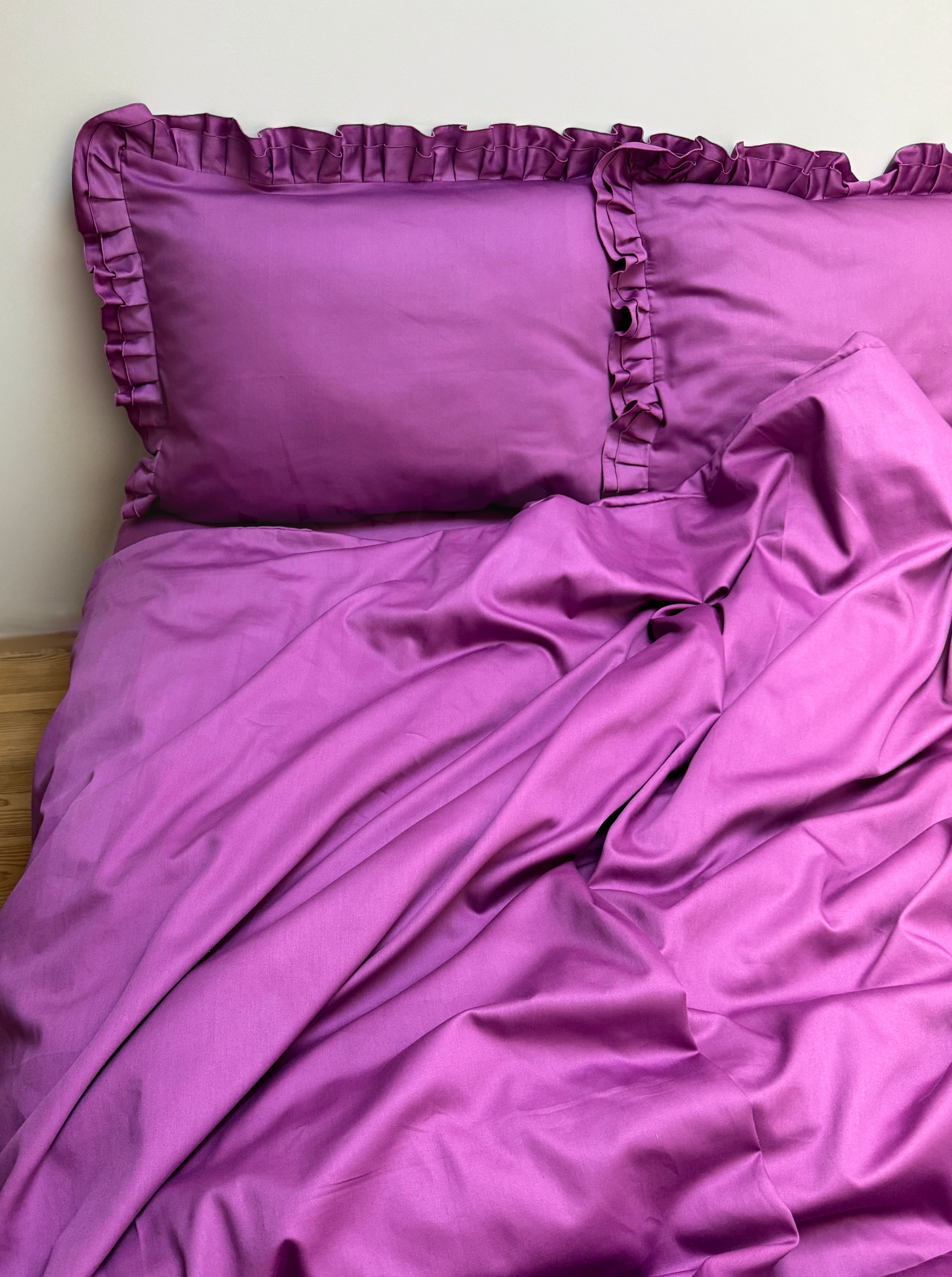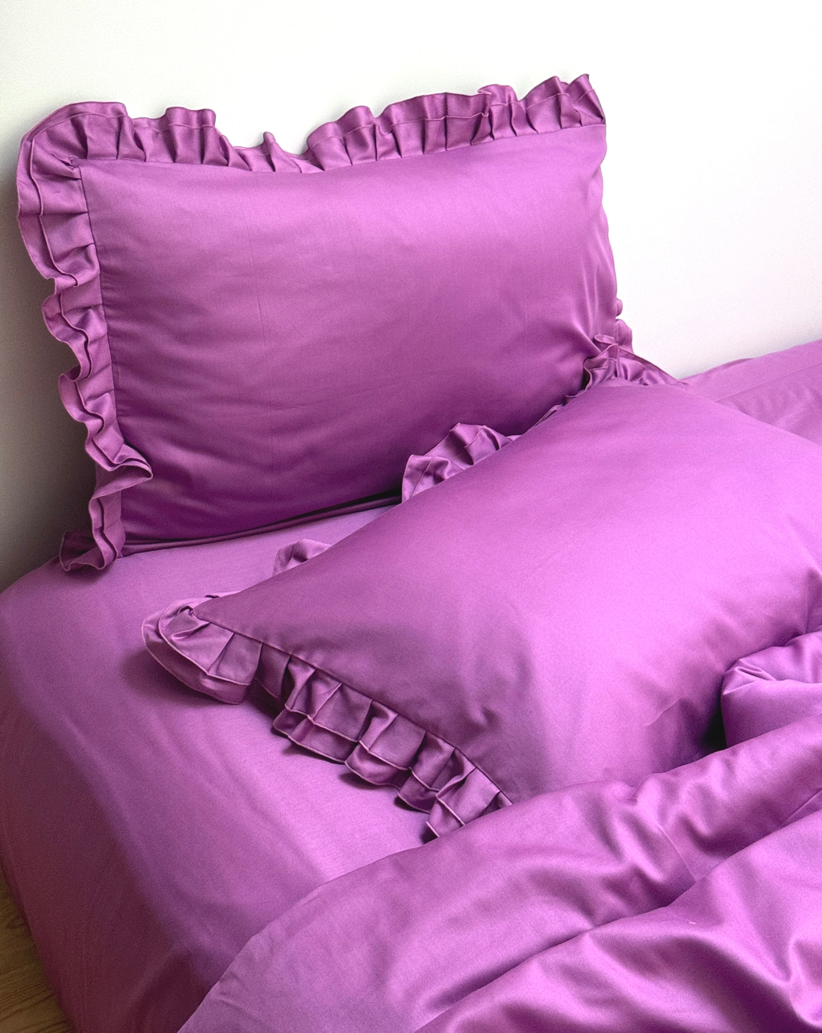Pościel z Kolekcji Falbanki powstaje z tej samej, sprawdzonej satyny bawełnianej klasy premium, wybieranej z myślą o trwałości i codziennym komforcie.