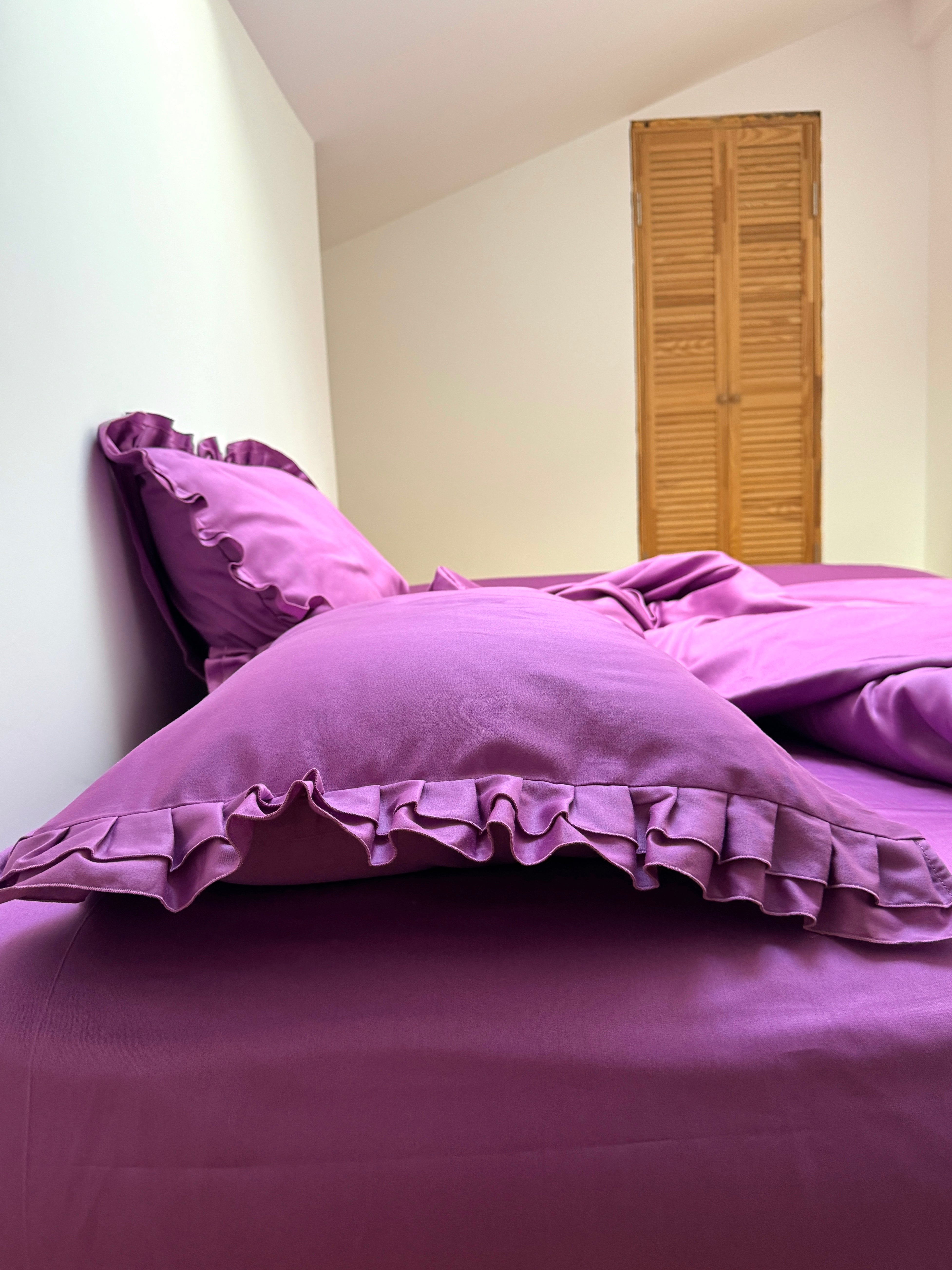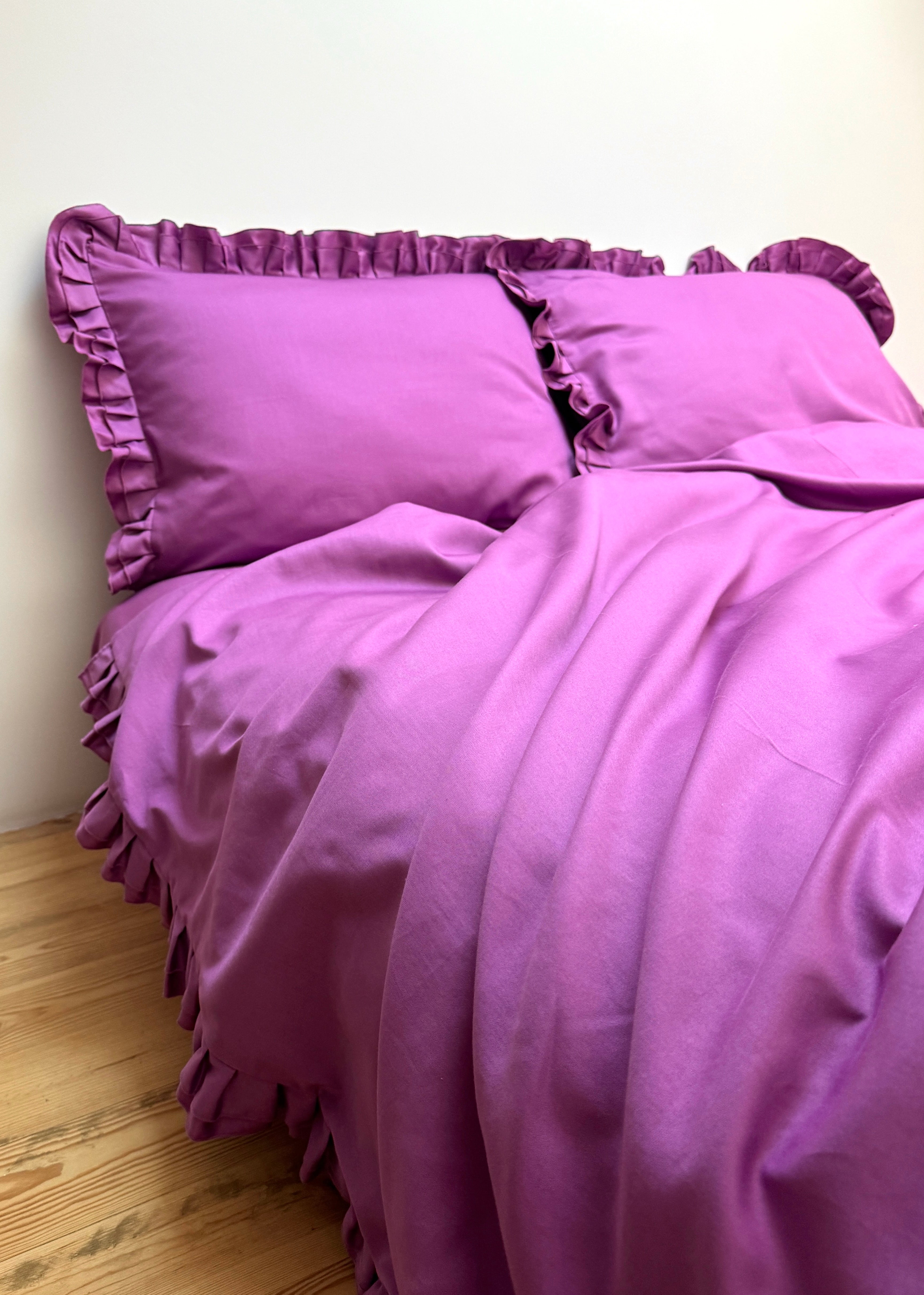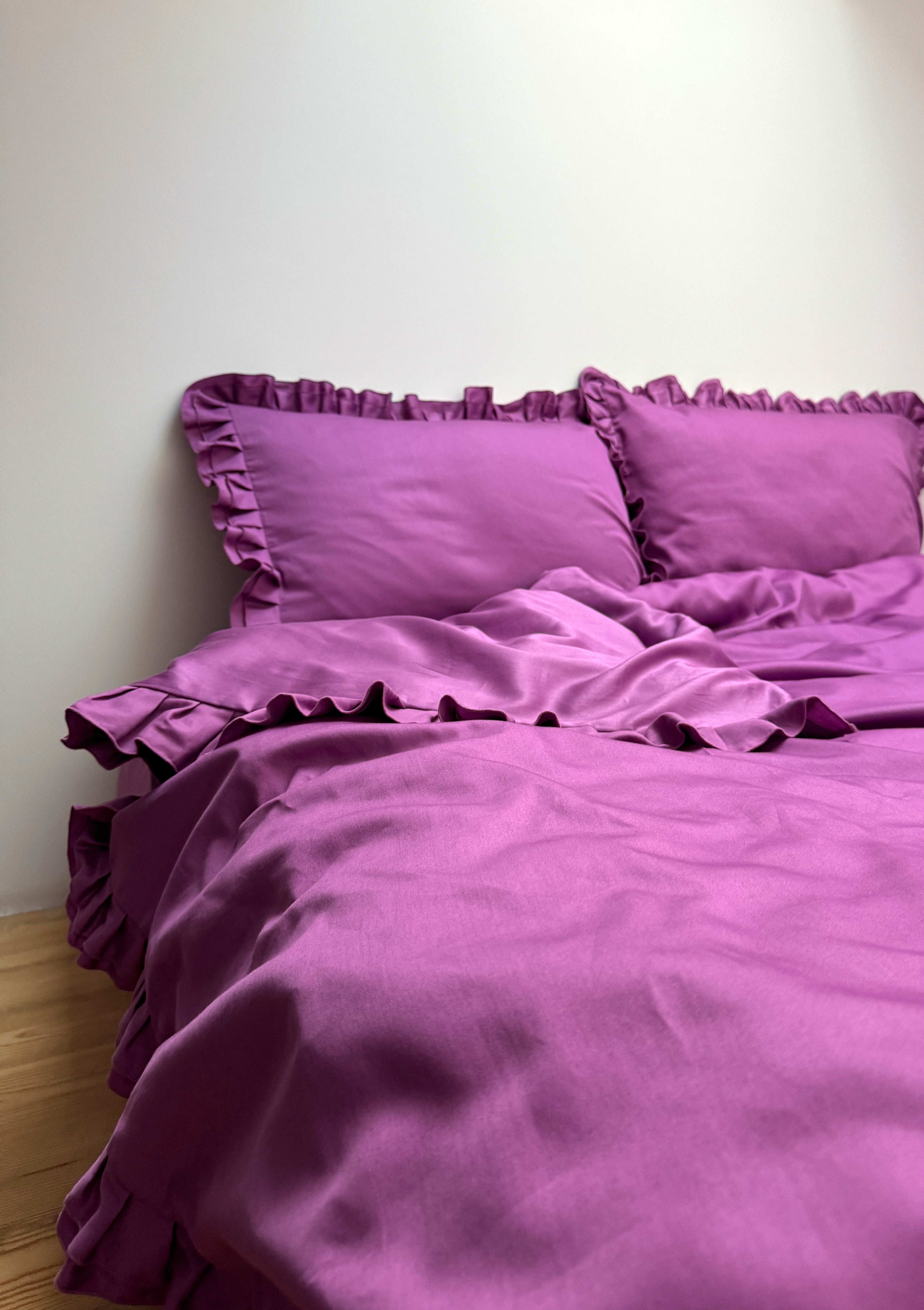 Pościel z Kolekcji Falbanki powstaje z tej samej, sprawdzonej satyny bawełnianej klasy premium, wybieranej z myślą o trwałości i codziennym komforcie.