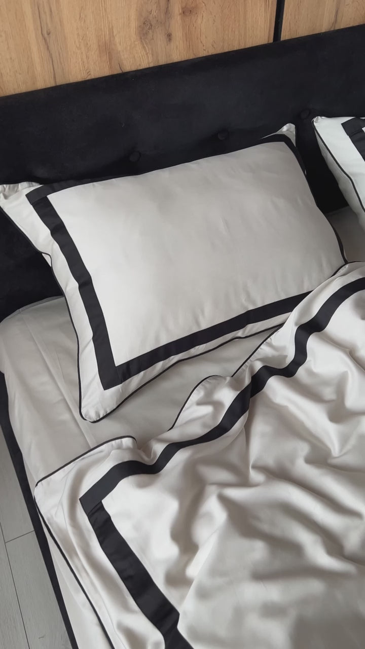 Pościel z Merceryzowanej Satyny – Classic Czarny & Kamienna Biel, 100% Bawełna Turecka, 145 g/m², Edycja Exclusive