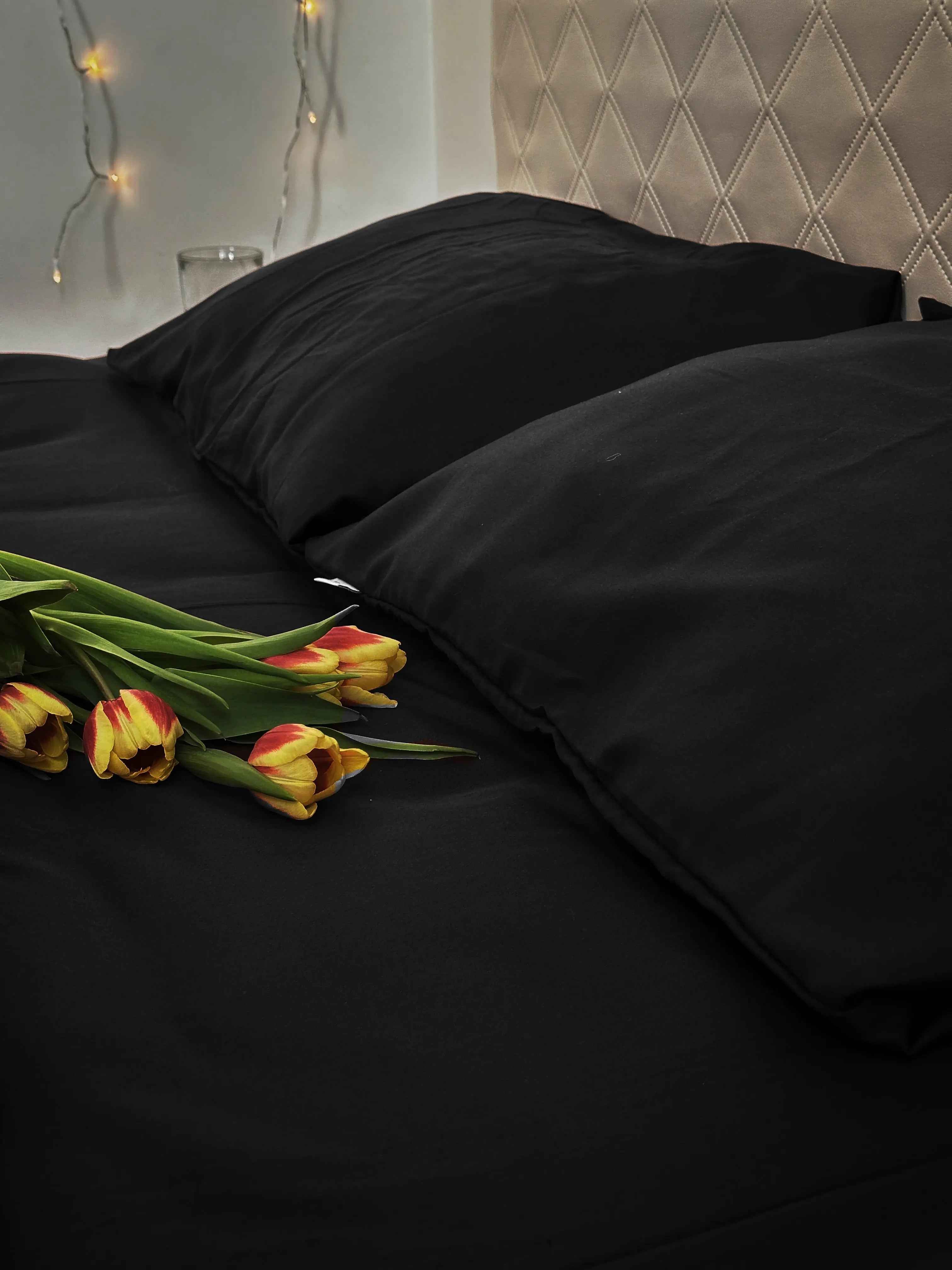 Premium Prześcieradło z Gumką z Satynowej Bawełny – Czarne, 100% Bawełna, Luksusowy Minimalistyczny Styl