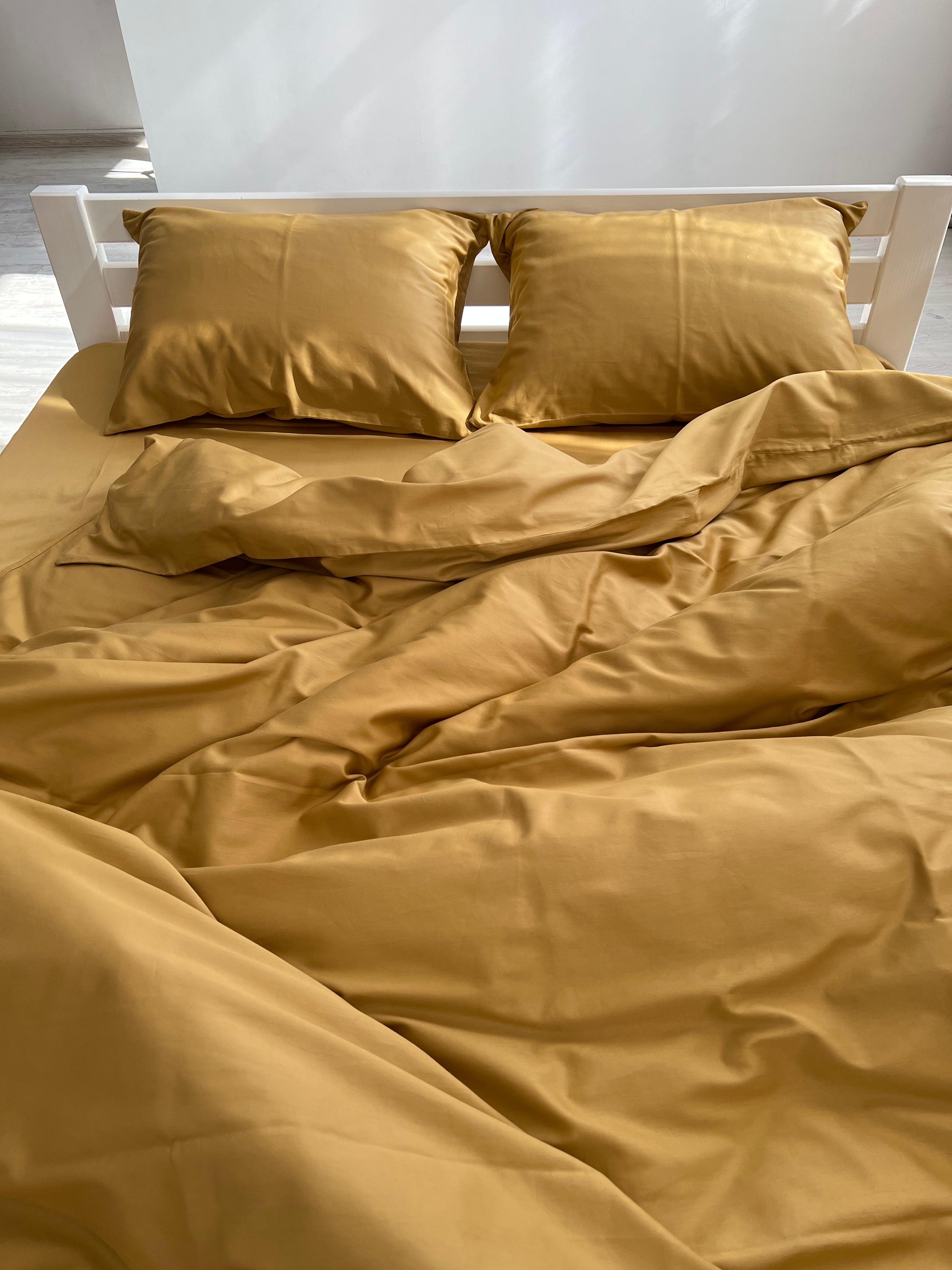Senapsfärgat satinbäddset – 100 % turkisk bomull, 140 g, hotelllyx